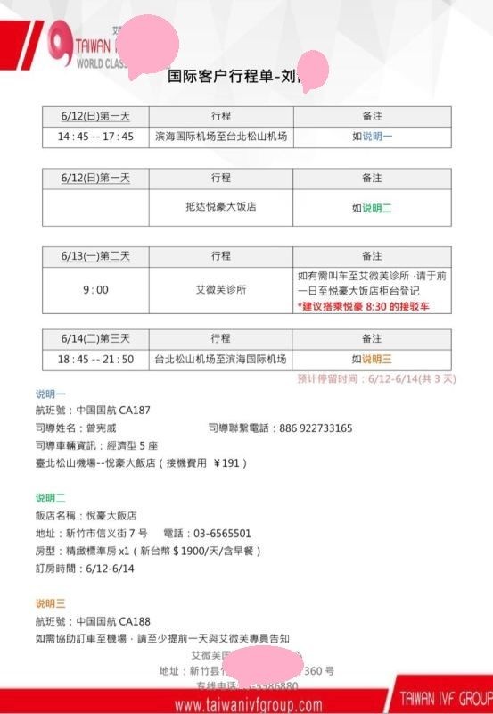 天津L先生赴台,进行IVF+OD供卵+第三代试管助孕,祝他一切顺利 加油!